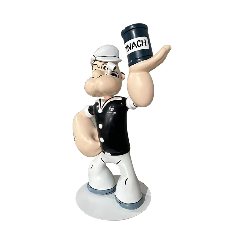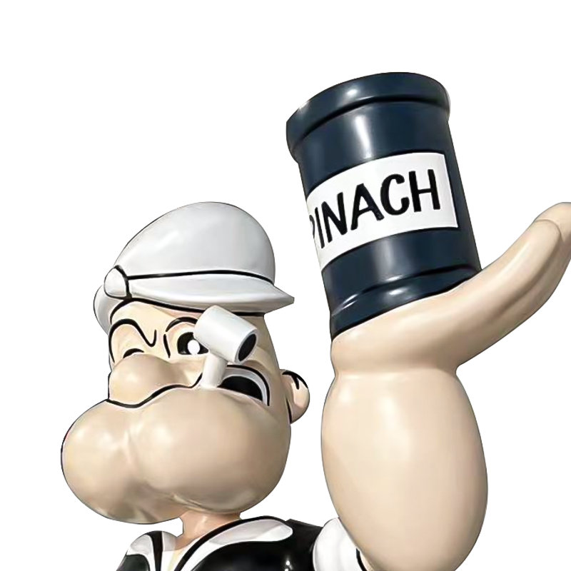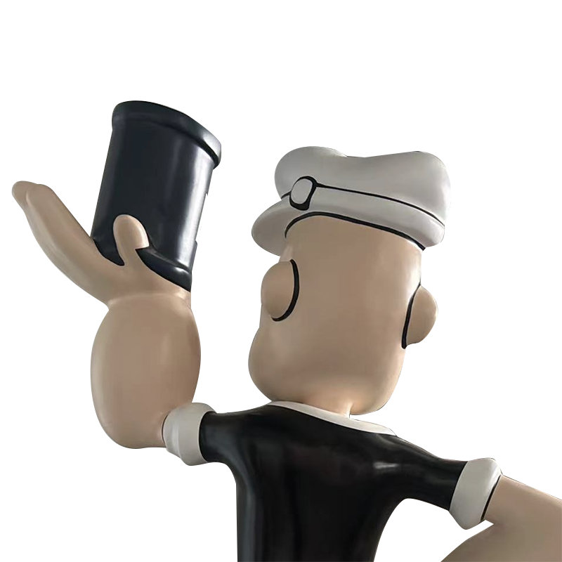 Vårt firma har tilpasset en tegneseriepopeye -skulptur, med størrelser, farger og logoer skreddersydd til kundens størrelse.