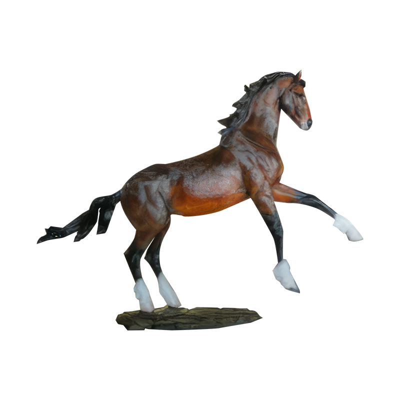 Den glassfiber simulerte hesteskulpturen har glatte overflatelinjer, godt proporsjonerte, livlige og naturtro former, og er egnet for dekorasjon i en serie scenepynt som hager, kjøpesentre, landskap osv.